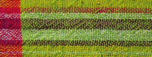 Every time she loads her loom the weaver chooses the colors and patterns.